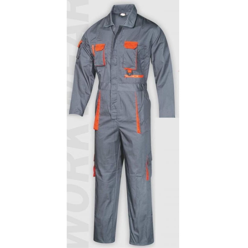 Ολόσωμη φόρμα εργασίας με πολλές εργονομικές τσέπες σε διάφορα σημεία και λειτουργικές τσέπες εργαλείων στις πλαϊνές όψεις .